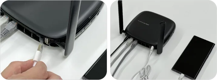 와이파이(WiFi) 공유기에 스마트폰을 USB 데이터 케이블로 연결